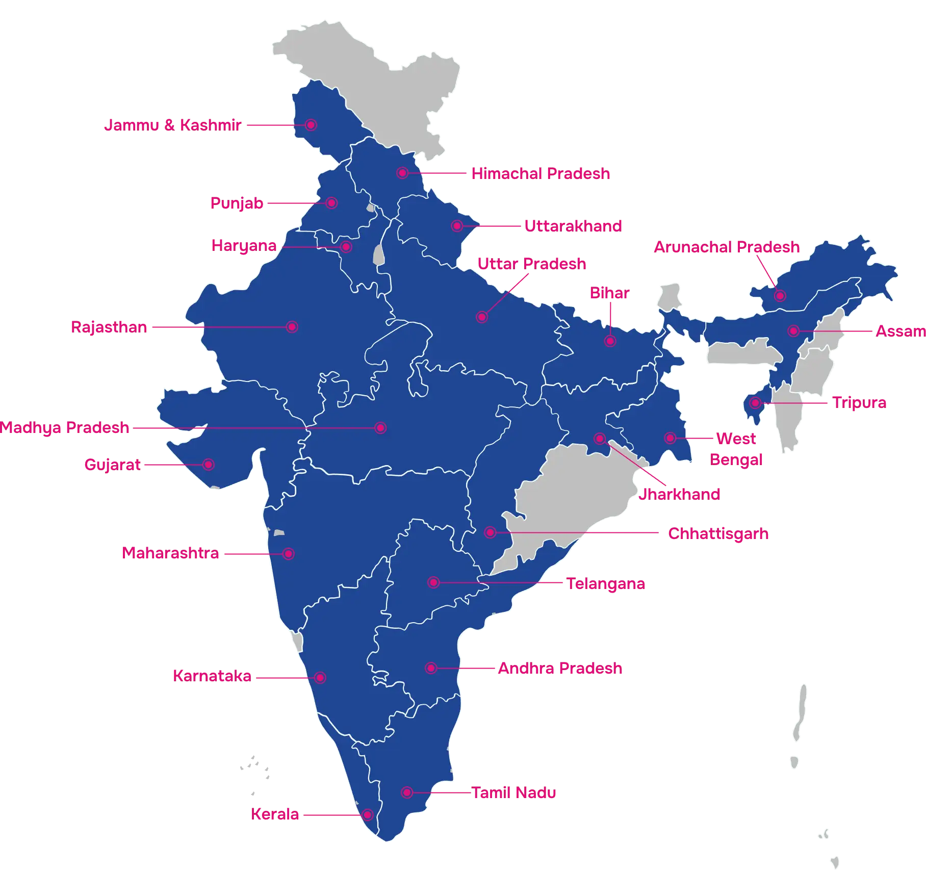 With a rapidly expanding PCD pharma network, we are proud to have a strong market presence across 20+ states in India. Our well-established distribution channels, reliable logistics, and trusted franchise partners allow us to deliver high-quality Gynae products to every corner of the country.